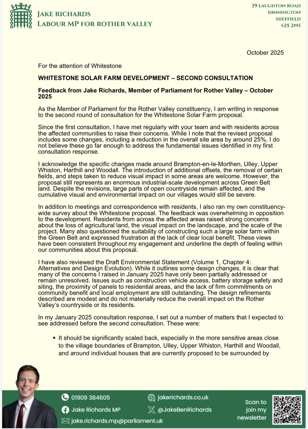 I want to be crystal clear to all my constituents – I continue to oppose the Whitestone plans in our area. This is an issue that goes beyond party politics and is about the future of our communities. Please see my full letter of objection below.