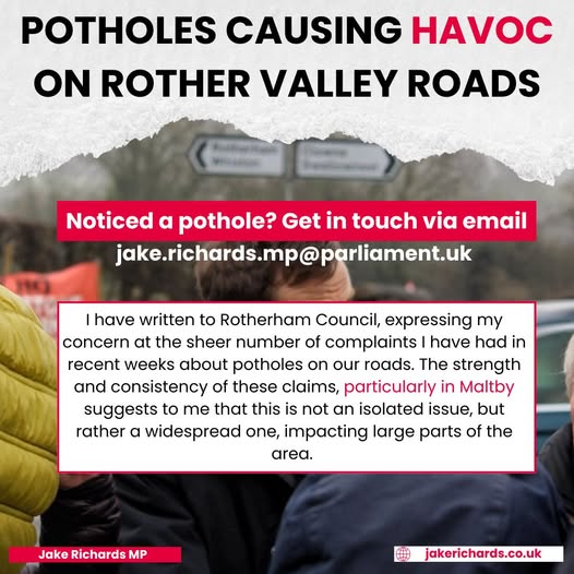 I have, following consultation with residents, identified a large list of roads that require attention, which I have passed onto Rotherham Council. I expect swift action, to identify when these roads were last inspected, remedial work that has been undertaken and whether defects have been formally recorded and classified.